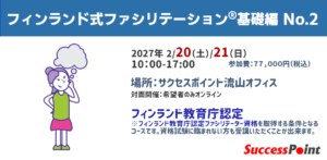 - 【2026年6月9日】フィンランド教育庁認定ファシリテーター上級認定試験 ー Professional Certified Facilitator会議において、感情が絡み合い、話し合いが対立し、平行線になりやすい、そんな「難しい対話」を解消するファシリテーションがテーマです。フィンランド式ファシリテーション®の考え方と実践を通して、会議における対立を乗り越え、協働と成長につなげていく進め方を学びます。会議において対立した状況でも対話を前に進めるための視点とプロセスを体感して、「対立した状況が起きても大丈夫!」と自信を持てるファシリテーターを育成する2日間です。