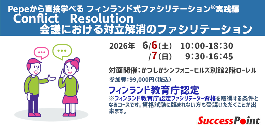【2026年6月6日・7日】Pepeから直接学べるフィンランド式ファシリテーション®実践編:Conflict Resolution 会議における対立解消のファシリテーション