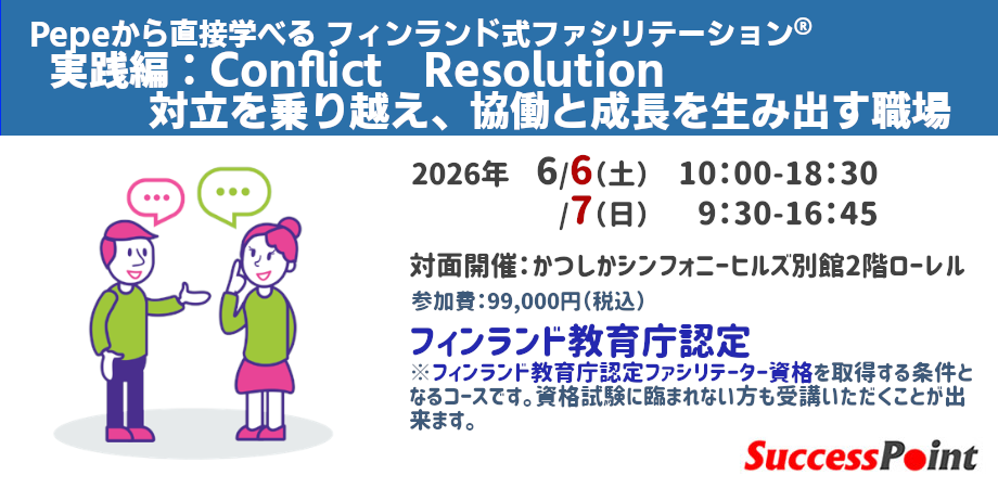 【2026年6月6日・7日】Pepeから直接学べるフィンランド式ファシリテーション®実践編:Conflict Resolution 対立を乗り越え、協働と成長を生み出す職場へ